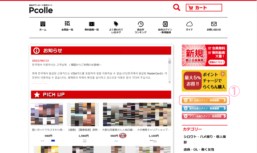Pcolleで作品購入をするためにまずすることは、購入会員登録です。