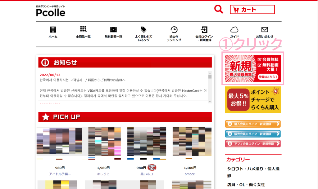 公式サイトトップページの右側にある「新規購入会員募集 登録はこちら」をクリックして下さい。